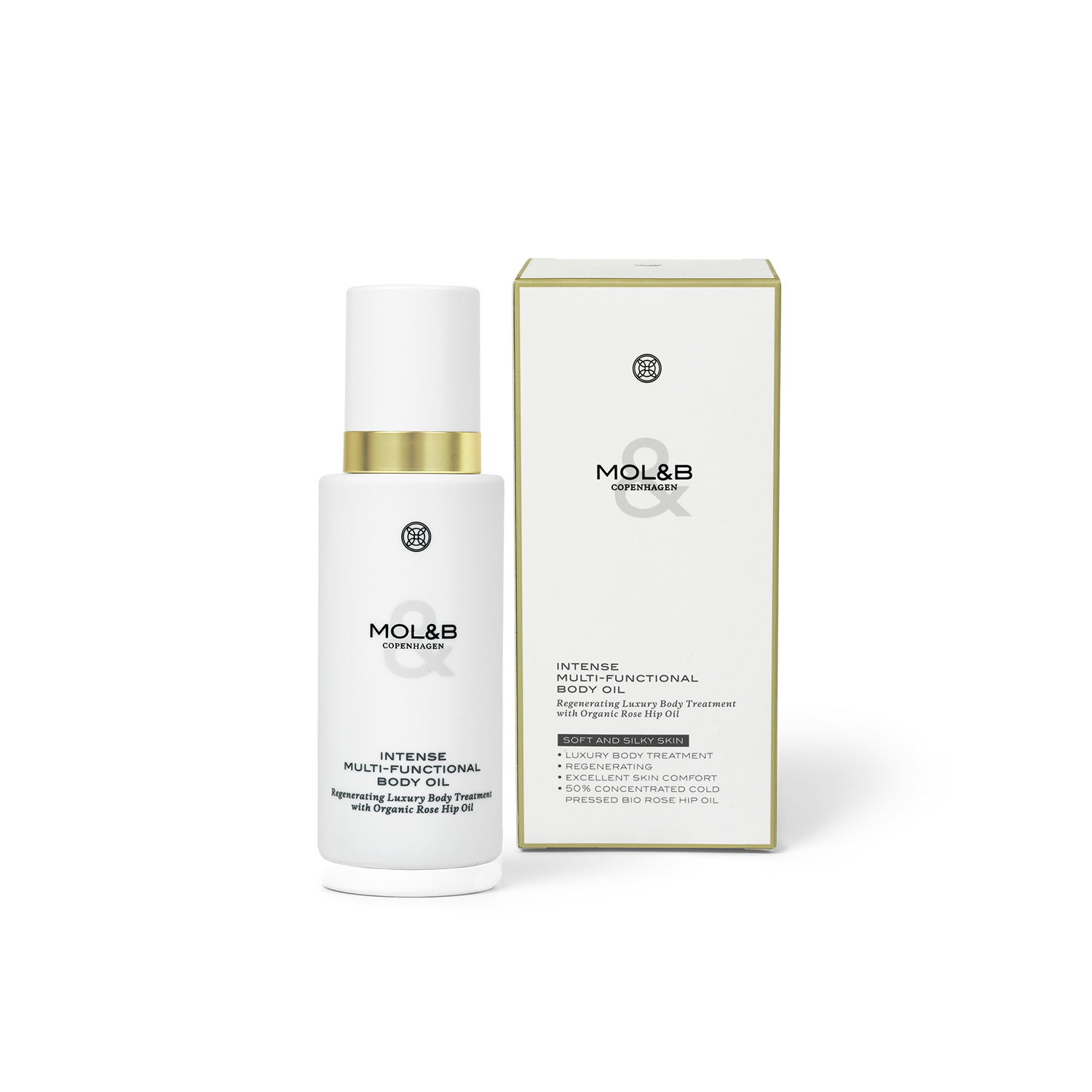 Mol&B Intense Multi-Functional Body Oil is a light, non-greasy oil that is quickly absorbed by the skin and makes it soft, supple, and silky smooth. It leaves the skin deeply hydrated all day.