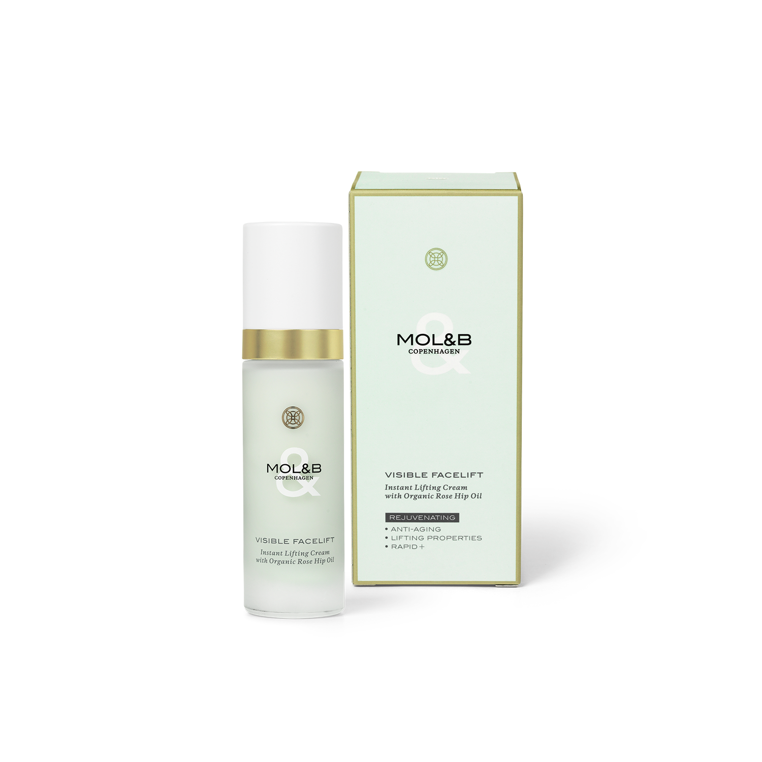 Mol&B’s Visible Facelift is an extremely effective anti-aging cream with an immediate lifting effect that gives a younger appearance and boosts the skin’s vitality. It contains Gatuline® In-Tense and Gatuline® Expression – active, natural plant extracts which reduces the most obvious sign of aging and block the muscular contractions of the face.